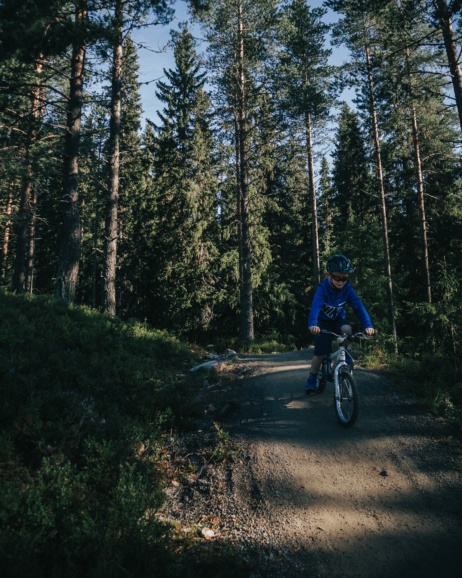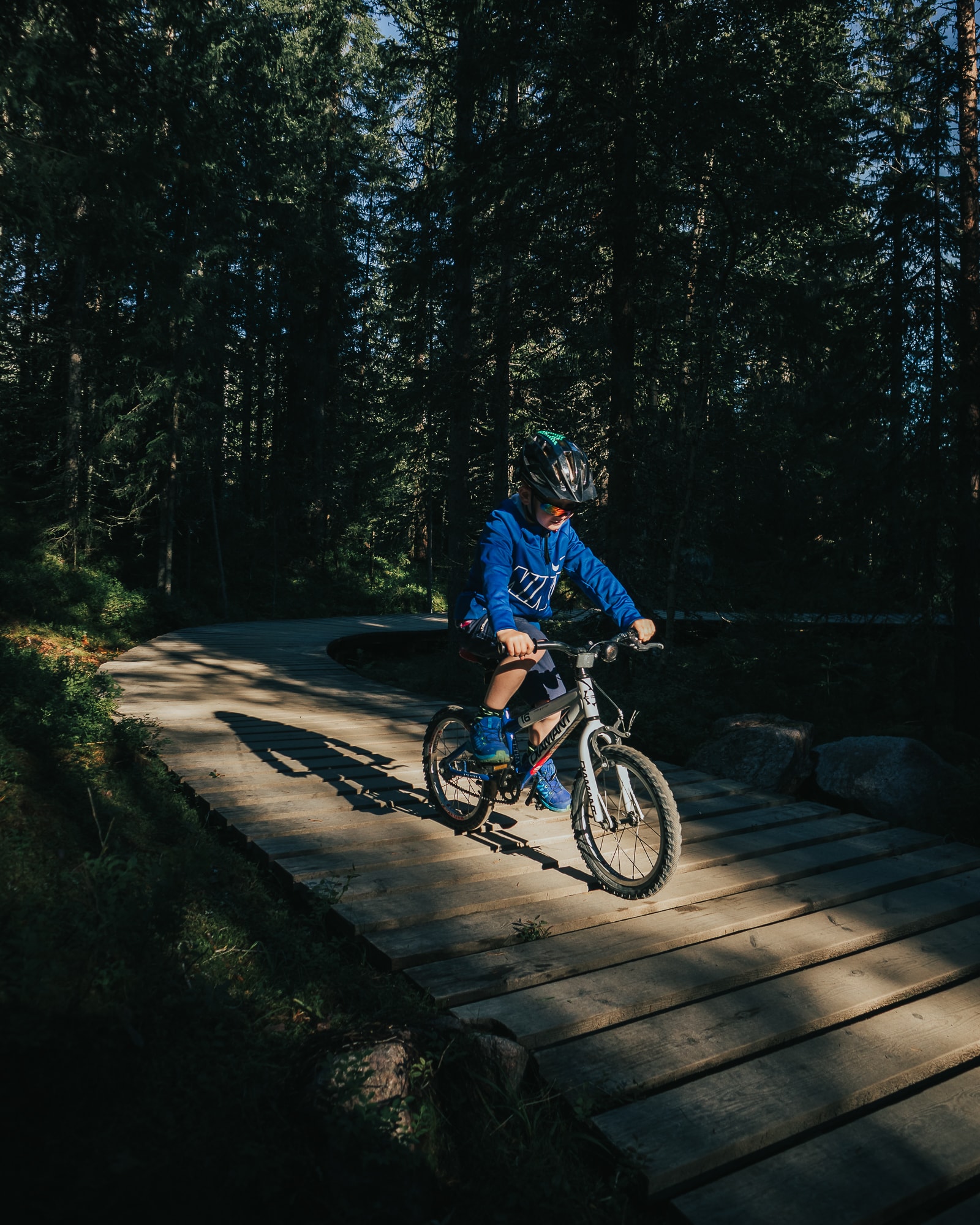 Whenever we had been out riding earlier this summer his general message was one of uncertainty and a bit of fear that he would not be able to ride a certain hill or part of the track. During this first ride in Green Fox, he started making jokes, saying wohooo, laughing and telling me stories about the things he could see in the forest. All the while riding his bike with confidence. Making turns, going downhill and over rocks, riding bridges as if he had never done anything else before. It was one of those perfect rides where you know that a new passion is created. I felt super lucky to be there with him on that ride.